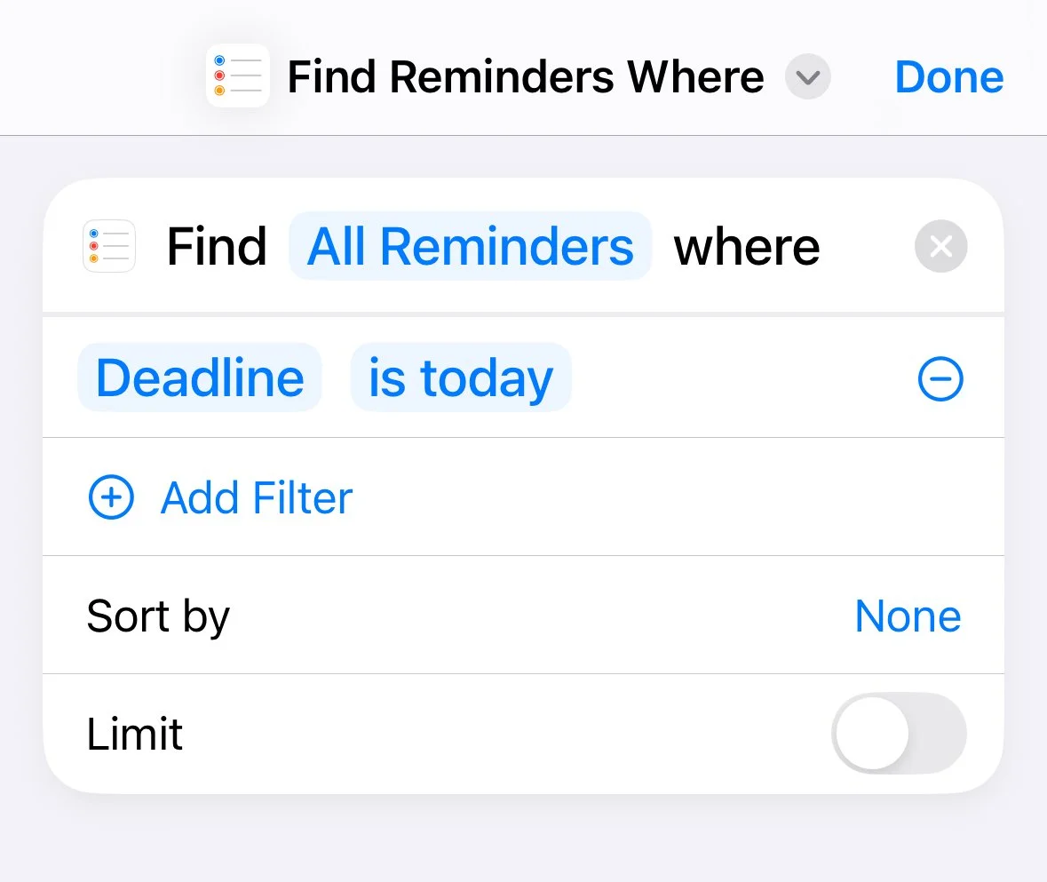 At the end of each day, I run a Shortcut that automatically finds any overdue tasks and updates their due date to the next day. It saves me the mental load of reviewing each one manually—and nothing slips through the cracks.
