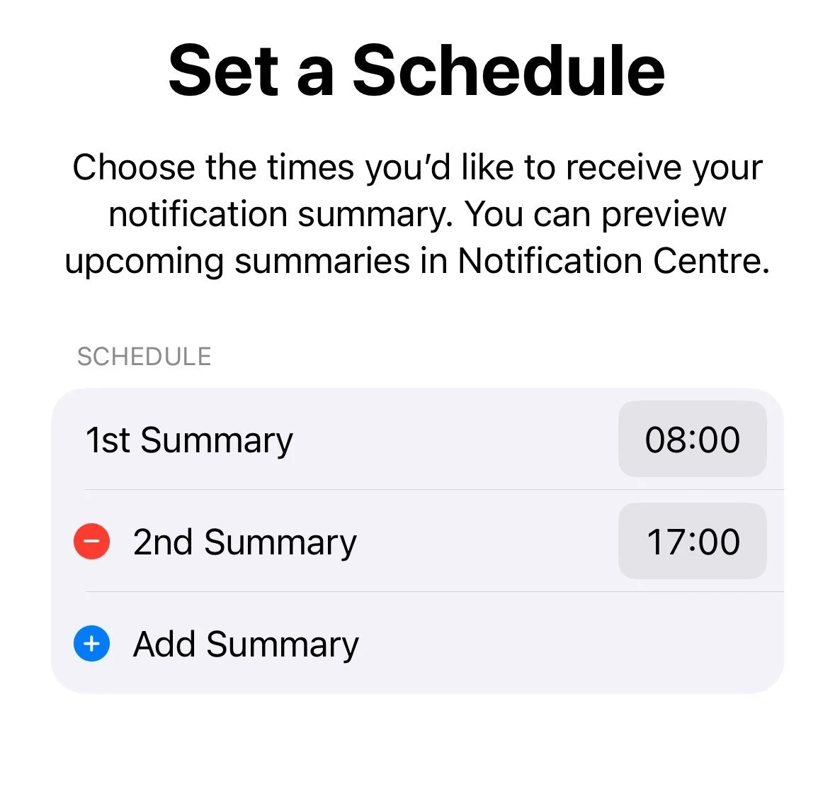 My summary pops up at 8am to plan my day, and again at 5pm to reflect and tick things off. It feels more intentional than constant alerts.