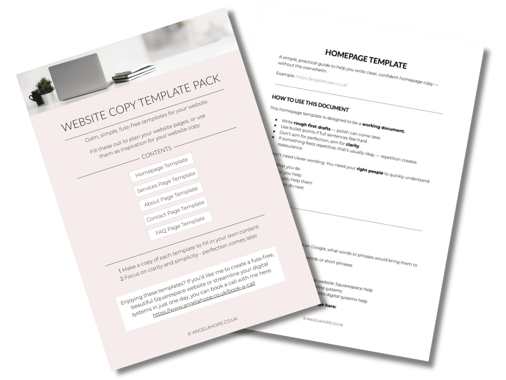 If you’d like support pulling your copy and design together into a simple, streamlined Squarespace website, you can find out more about working with me → Work With Me